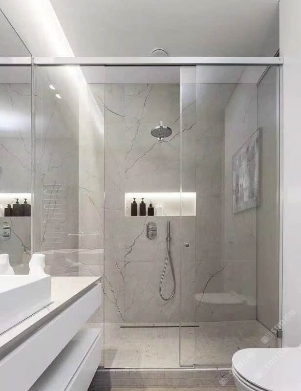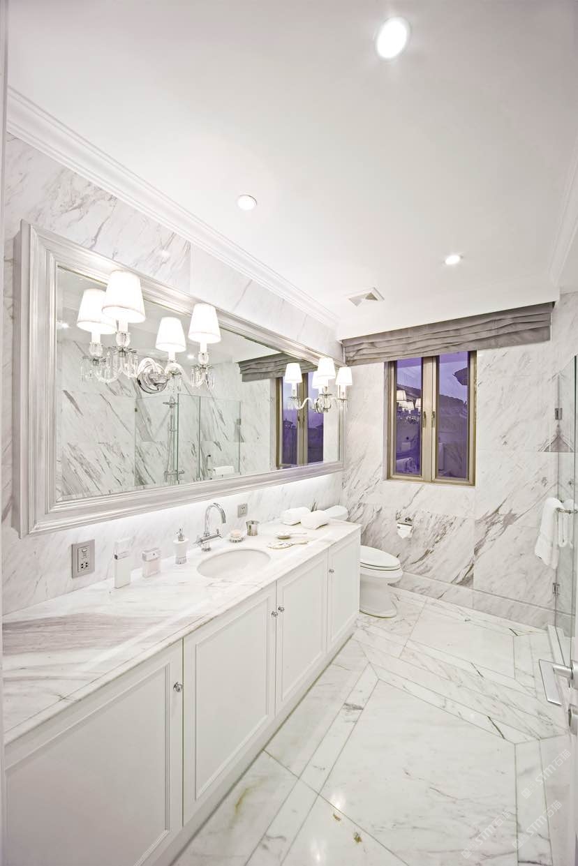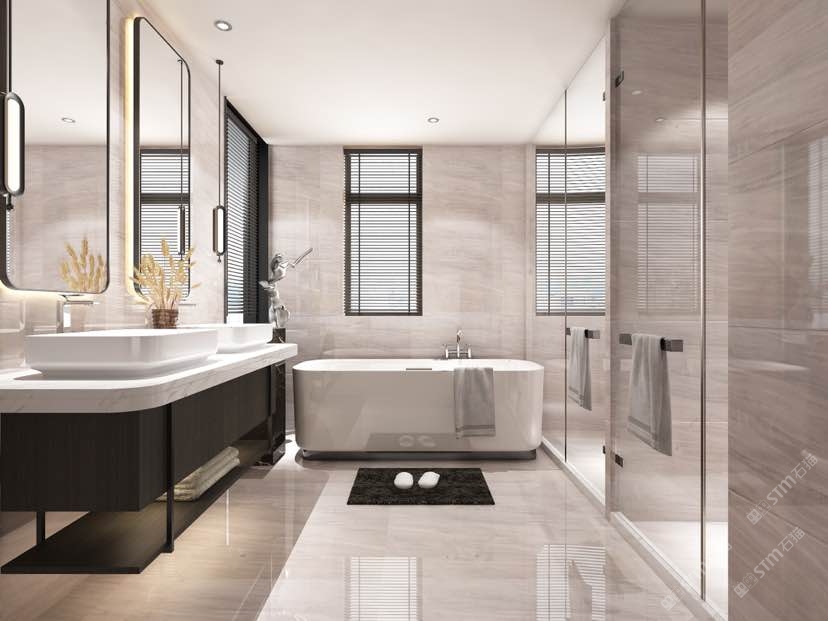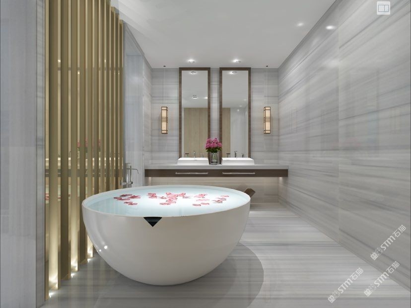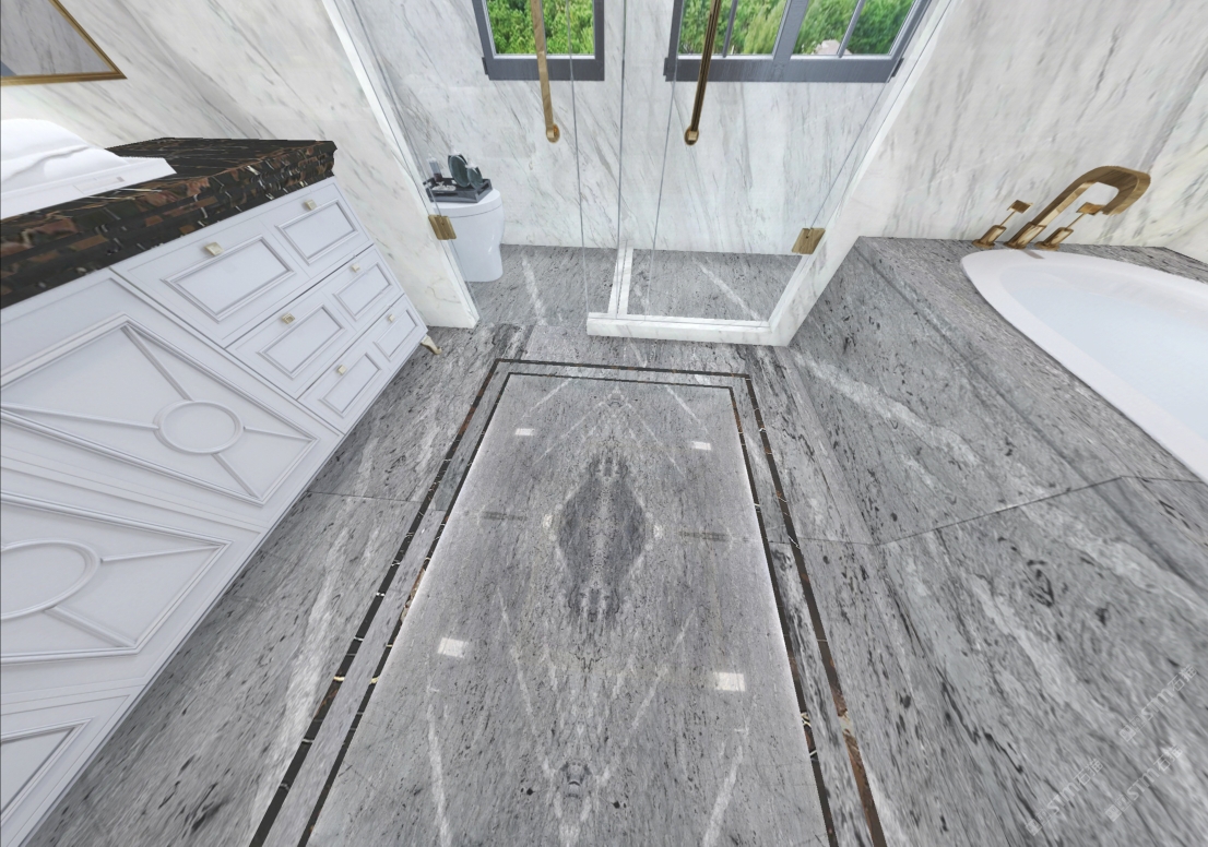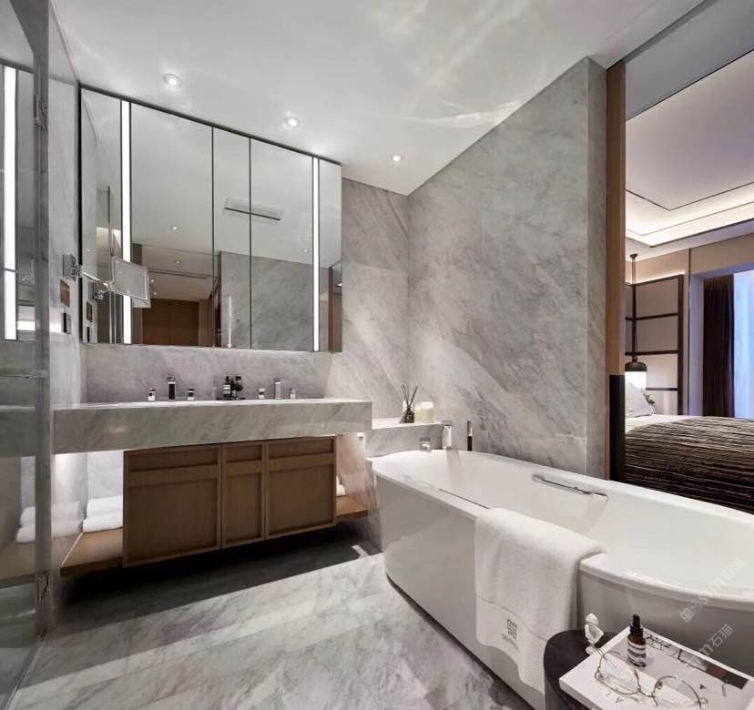 以大理石的天然肌理,雕琢衛浴的奢雅格調。維納斯白的純凈底色,交織著金灰紋路的藝術韻律,從墻面延伸至地面,每一處鋪貼都是對精致生活的注解。在這一方空間里,大理石的冷冽質感與空間的溫馨氛圍碰撞,既顯高級感,又藏煙火氣,讓衛浴時光成為一場視覺與感官的雙重奢享。