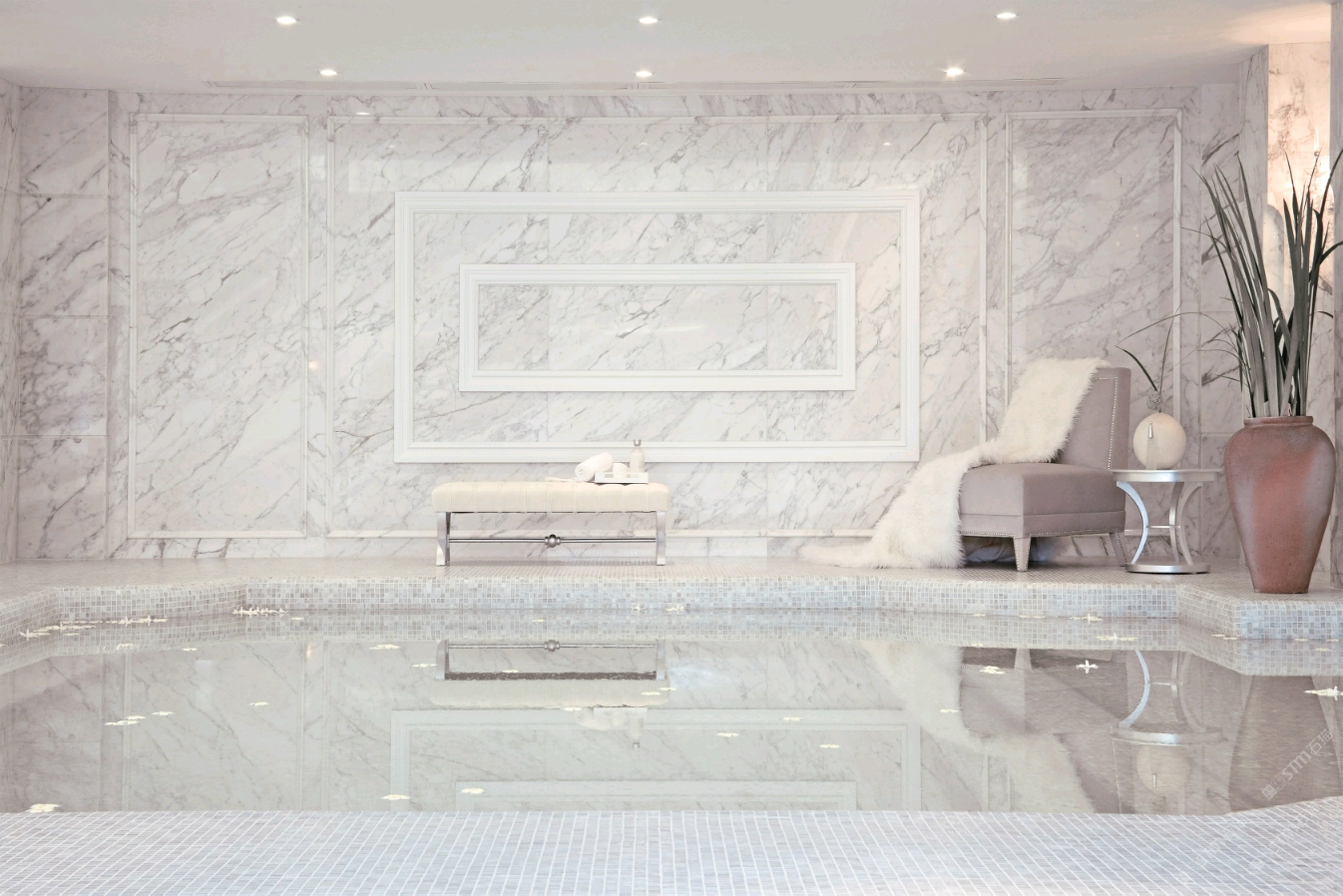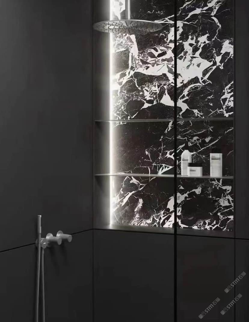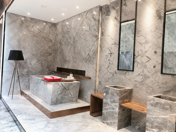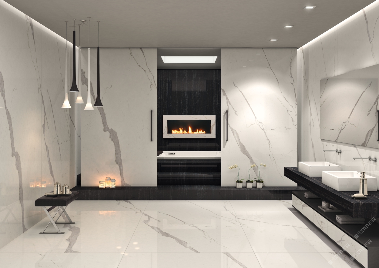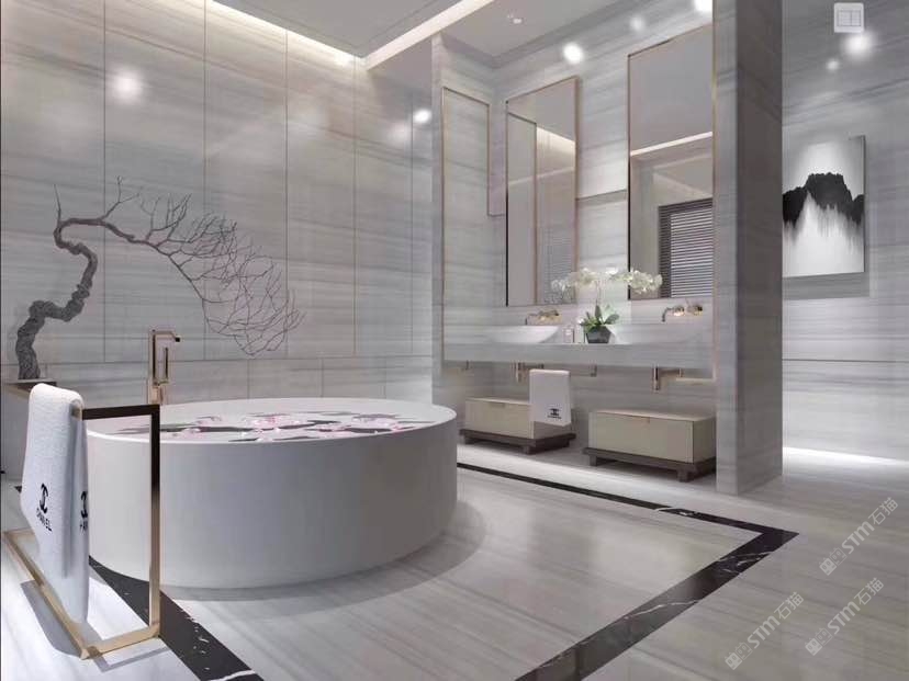 以大理石的天然肌理,雕琢衛浴的奢雅格調。維納斯白的純凈底色,交織著金灰紋路的藝術韻律,從墻面延伸至地面,每一處鋪貼都是對精致生活的注解。在這一方空間里,大理石的冷冽質感與空間的溫馨氛圍碰撞,既顯高級感,又藏煙火氣,讓衛浴時光成為一場視覺與感官的雙重奢享。